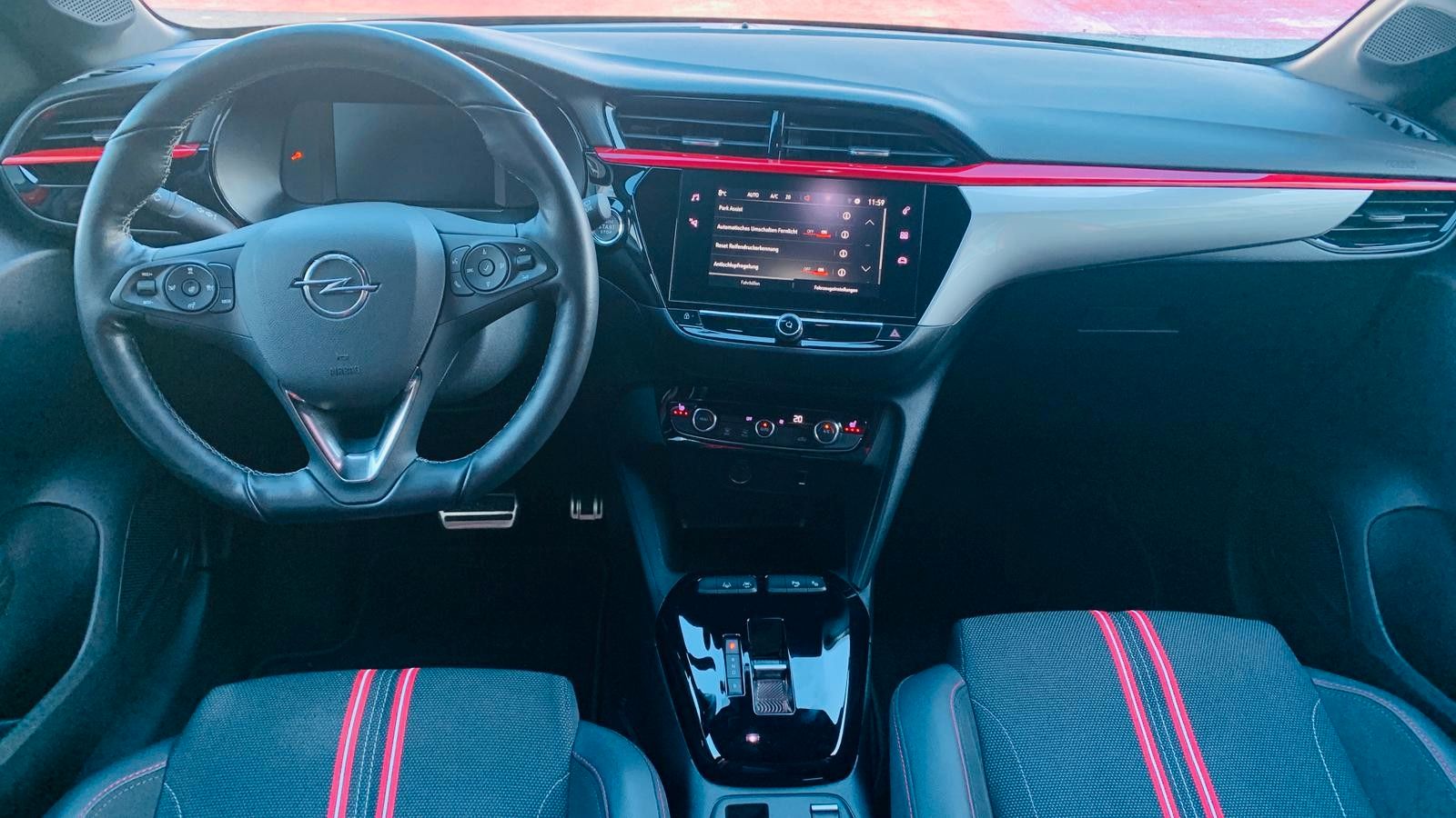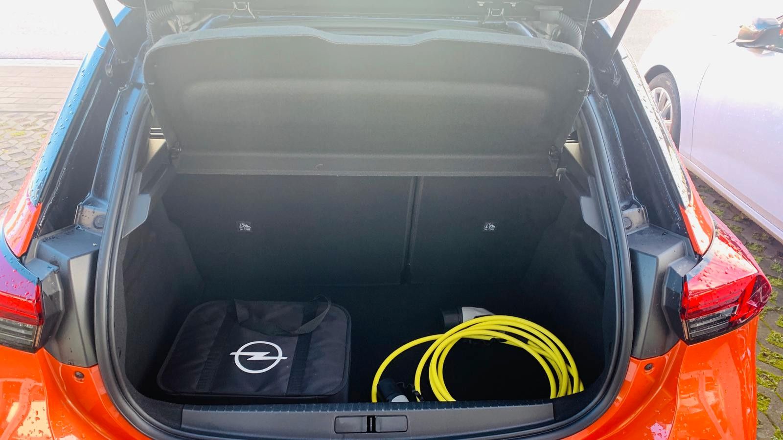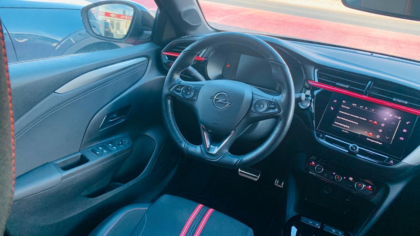 Sportsitze vorne 16" Leichtmetallfelgen (5 Speichen) in Silber/Schwarz mit Allwetter-/Ganzjahresreifen Sitzheizung vorne Onboard-Charger (fahrzeugintegrierte Ladeeinheit), 3-phasig (11 kW) Nebelscheinwerfer Lenkradheizung 180-Grad-Panorama-Rückfahrkamera Parkpilot, Einparkhilfe vorn und hinten mit audiovisueller Warnung Parkassisten (semielektr. Ein- und Ausparkassistent) Toter-Winkel-Warner Geschwindigkeits-Assistent (Tempomat) mit autom. Abstandsregelung (ACC) Frontkollisionswarner Gefahrenbremsung autom. Fußgänger- und Radfahrererkennung Mode-3-Ladekabel (11 kW, 3-phasig) für öffentliches Laden, 6 Meter Länge Außenspiegelgehäuse in Schwarz B-Säulen in Hochglanzschwarz Dach-Designlinie, Schwarz Dach in Kontrastfarbe Schwarz Stoßfänger in Sport-Optik, vorn und hinten Aluminium-Sportpedale Dachhimmel, Schwarz Dekorleiste, Rot Fahrersitz, 6-fach manuell einstellbar Beifahrersitz, 4-fach manuell einstellbar Rücksitzlehne im Verhältnis 60 :40 geteilt umklappbar Berg-Anfahr-Assistent Geschwindigkeitsbegrenzer (Limiter) Spurhalte-Assistent Verkehrsschilderkennung Müdigkeitserkennung LED-Scheinwerfer LED-Tagfahrlicht Fernlichtassistent Multimedia Radio Bluetooth-Freisprecheinrichtung Bluetooth-Audiostreaming 7˝-Touchscreen-Farbdisplay Apple CarPlay und Android Auto Digitaler Radioempfang DAB+ Quickheat Schnellheizsystem Klimaautomatik 7˝-Fahrerinfodisplay, farbig, volldigital Fensterheber vorne & hinten elektr. Lederlenkrad, unten abgeflacht 3 einstellbare Fahrmodi (ECO, Normal und Sport) Parkbremse, elektrisch Lithium-Ionen-Batterie, mit 50 kWh Speicherkapazität myOpel App Wärmepumpe Licht- & Regensensor Innenspiegel autom. abblendend Sprachbedienung via Smartphonekoppellung Navi via AppleCarPlay / Android Auto Bordcomputer Aktiver Fußgänger-Warnton (AVAS) Nichtraucherfahrzeug tiergeruchfreies Fahrzeug